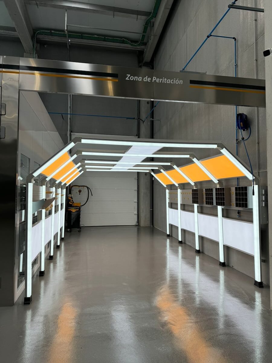 Nuestras instalaciones incluyen también cabina de pintura profesional, con ambiente controlado y filtros de partículas que garantizan un acabado impecable y respetuoso con el entorno.